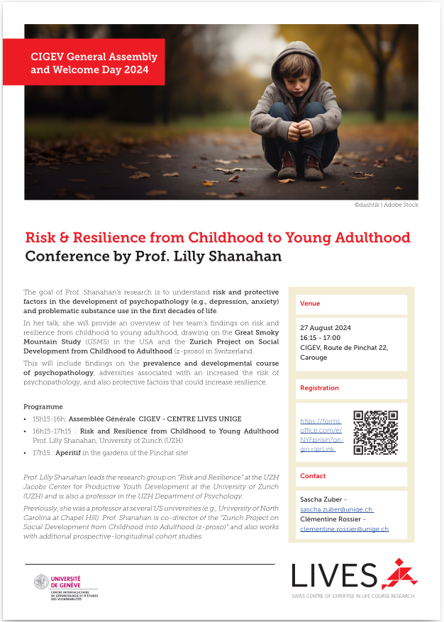 Prof. Lilly Shanahan, University of Zurich (UZH) - 16h15-17h: Assemblée Générale CIGEV - CENTRE LIVES UNIGE