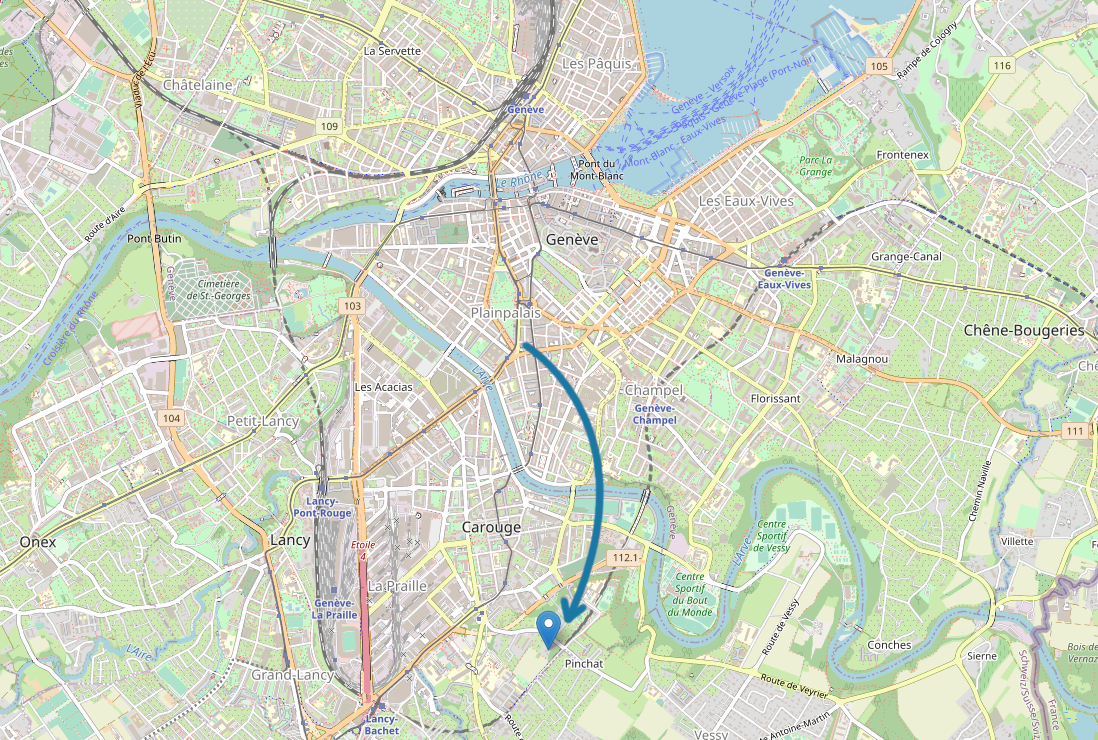 Pour nous rejoindre en transport publics, vous pourrez emprunter le bus 41 au Rondeau de Carouge et vous arrêter au 1er arrêt, Fillion. À pied depuis le Rondeau, il faut compter environ 10 minutes (ça monte!).